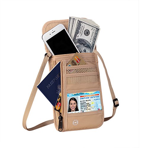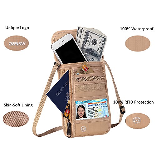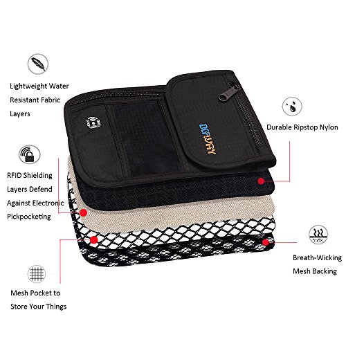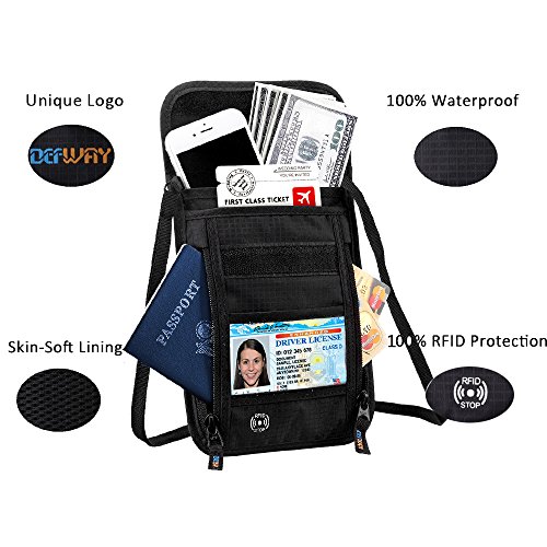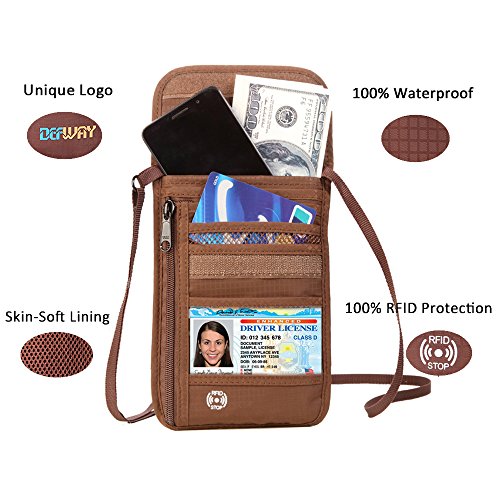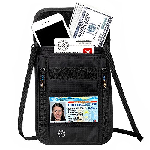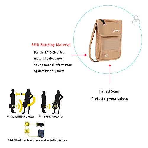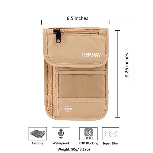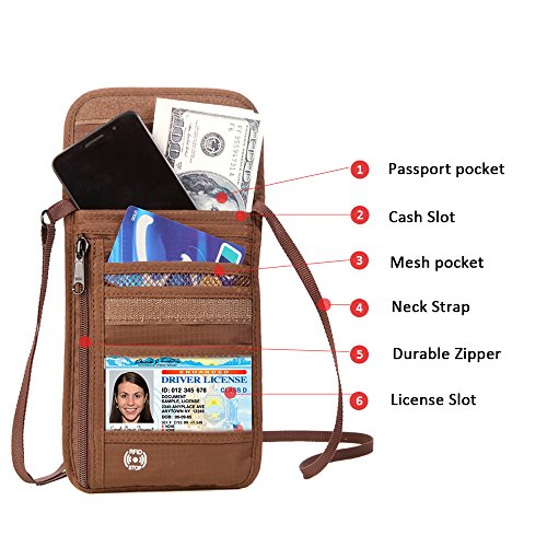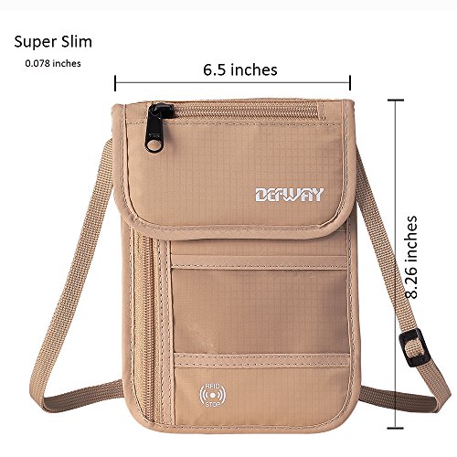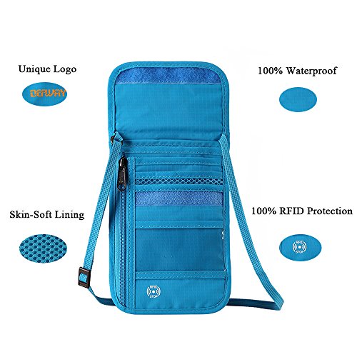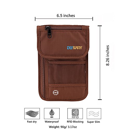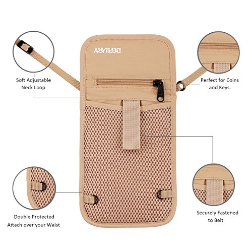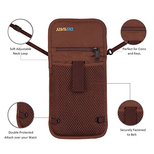 Product Features: Dew Neck pouch is an ideal traveling partner for you. It features with high-class design, adjustable strap, moisture-absorbing back panel, and smart storage compartments. Built-in RFID blocking technology protects you from high tech pickpockets and identity thieves. It would be a perfect must-have if you plan to have a trip.