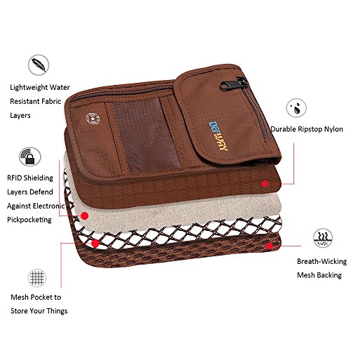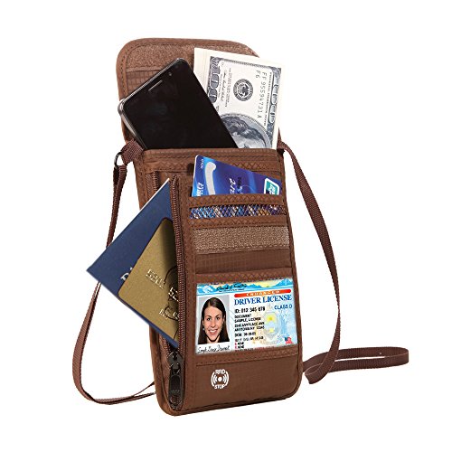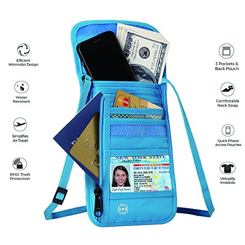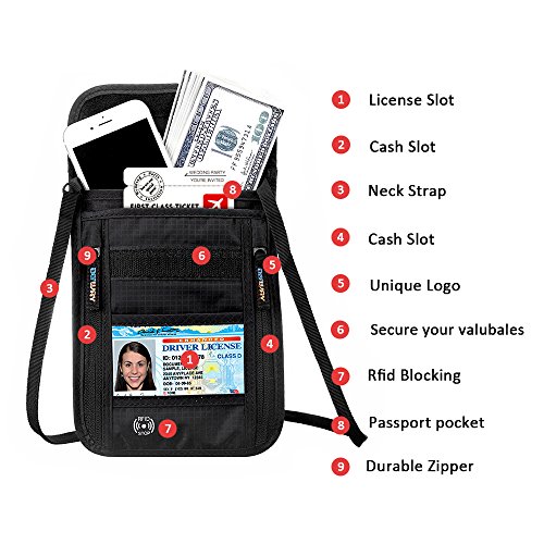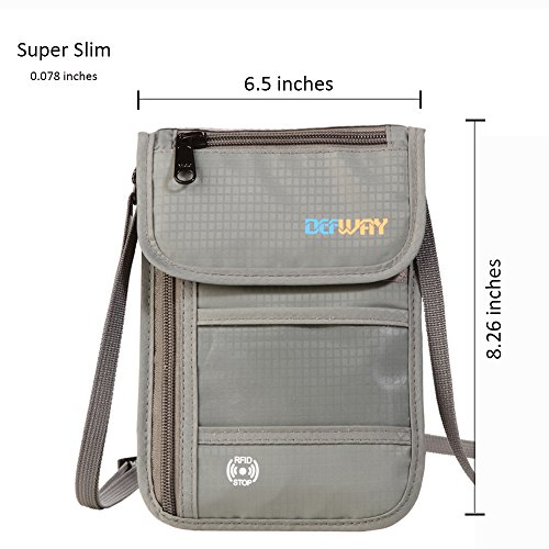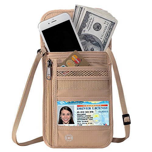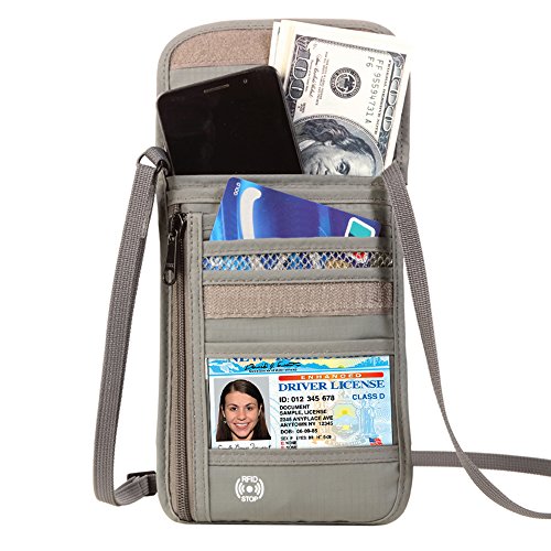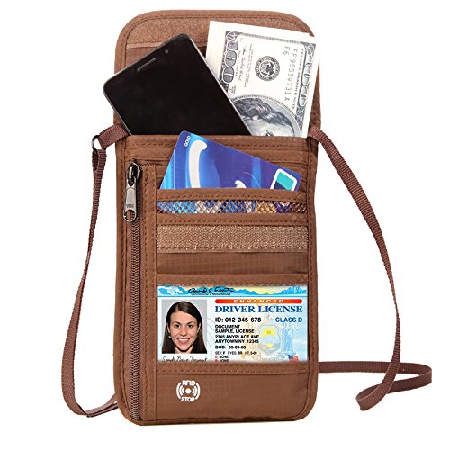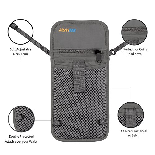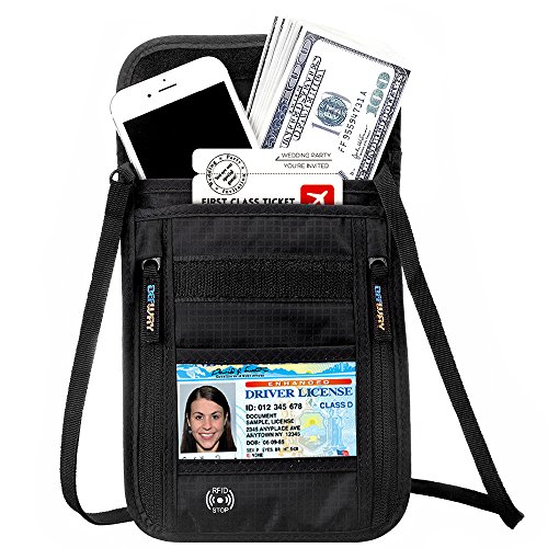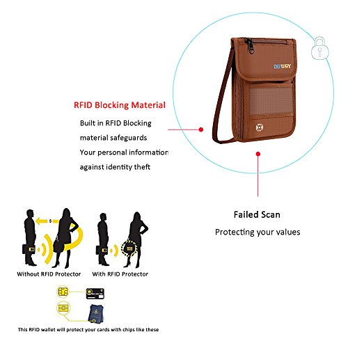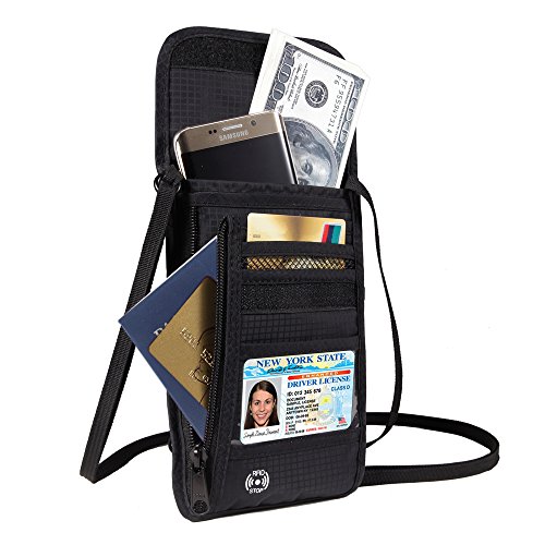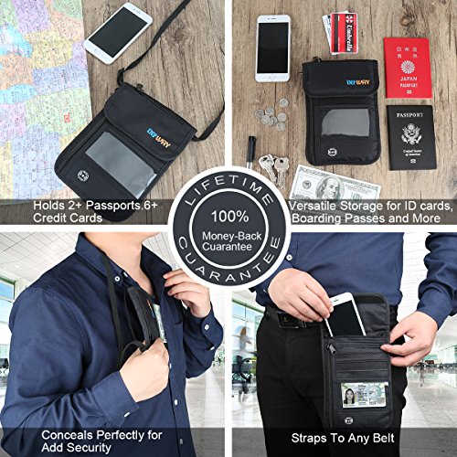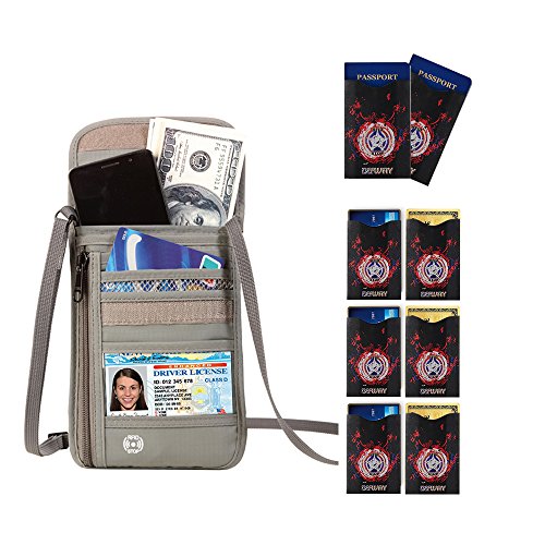 RFID Wallet RFID Blocking Neck Wallet is made from high quality waterproof nylon, offer a better grip on the clutch. Well organized your carry-on essentials, such as credit cards, identify cards, coupons, tickets, key, money, coins, cash and etc. Keep them all in the wallet and protect them well anywhere you go. Durable and lightweight, you can hold it or put it into the wallets to carry with you.