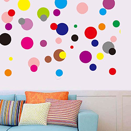 Set of 120 Removable Vinyl Colorful Multi Color Polka Dot Wall Decor Decal DIY Home Decoration art Graphic Decals Nursery room Stickers Just Peel and Stick for Bedroom Living room Bathroom (Dots)