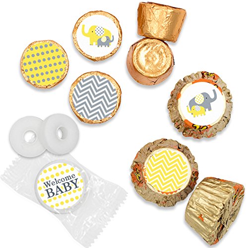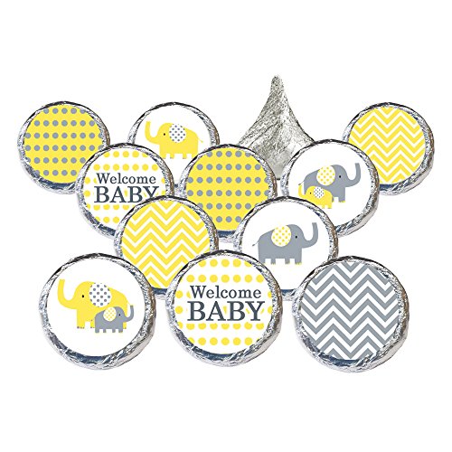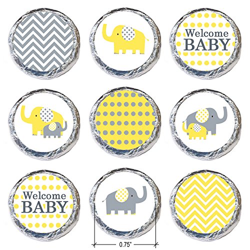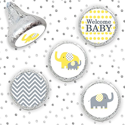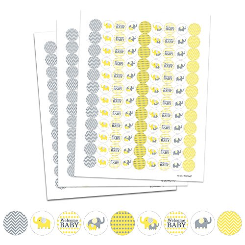 Yellow and Gray Elephant - Unisex Baby Shower Favor Stickers (324 Count)