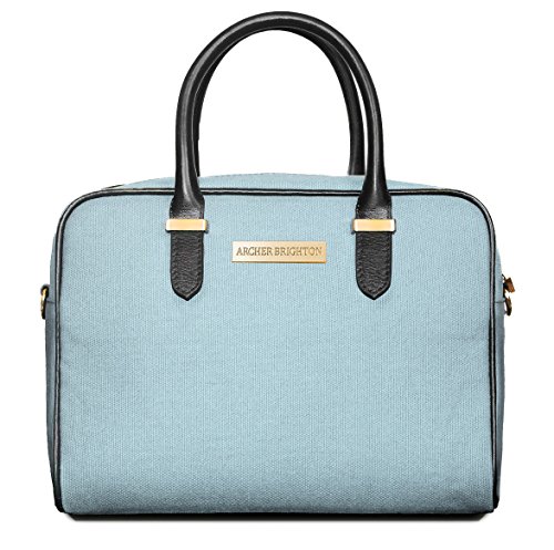 Archer Brighton Sophie Insulated Lunch Box Tote Bag. Adult Women’s Professional Leather Canvas Lunch Cooler Bag for Office, Picnics & Travel - Waterproof with Shoulder Crossbody (Aqua Blue)