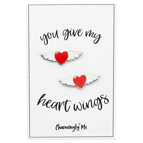 Studio : CharminglyMe Publisher : CharminglyMe Binding : Apparel Product Description A set of two winged hearts arrive on a greeting card that reads " you give my heart wings ". Created from a hand drawn sketch, each heart measures approximately 3/4" by .5 with a secure rubber backing. 0