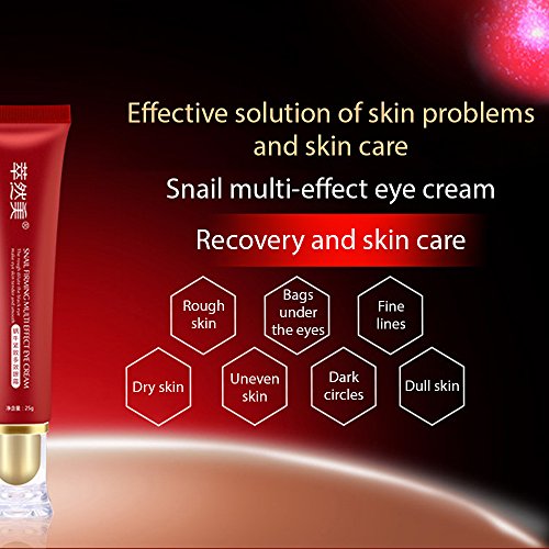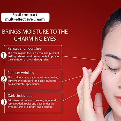 Efficacy: contains snail mucus extract, increases skin elasticity, smoothes wrinkles, moisturizes the skin and rejuvenates. Specifications: 25g Suitable for: eye skin, especially for skin with the bags under the eyes and fine lines. Main ingredients: water, snail extract, propylene glycol, dimethicone, betaine, glycerin. With the following problems you need a snail compact multi-effect eye cream Prolonged use of computer and phone Late evening and night work Eye makeup The impact of the environment Improvement of the eye skin and the return of youth Snail compact multi-effect eye cream Product efficacy: Provides nutrition and moisture, eliminates dry, smoothes wrinkles, restores smoothness and elasticity, improves skin tone, makes the eyes look more bright and young. The skin is restored, becomes supple and velvety to the touch Snail mucus tightens the skin and restores its youthful appearance. Snail compact multi-effect eye cream Brings moisture to the charming eyes 1. Relaxes and nourishes. The cream gives the skin a cool and pleasant feeling, relaxes, provides nutrients, improves the condition of dry and rough skin. 2. Reduces wrinkles. The snail mucus extract smoothes wrinkles, tightens the contour of the eyes, gives the eyes a youthful appearance. 3. Dark circles fade. Brightens skin around the eyes, reduces dry, removes dark circles and bags under the eyes, restores skin bright and beautiful. Double action for the rejuvenation and restoration of the skin Snail compact multi-effect eye cream We have worked hard for your beauty