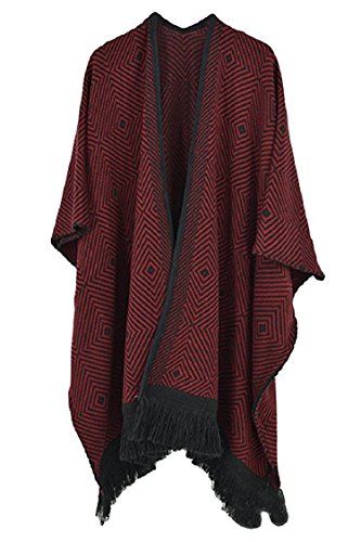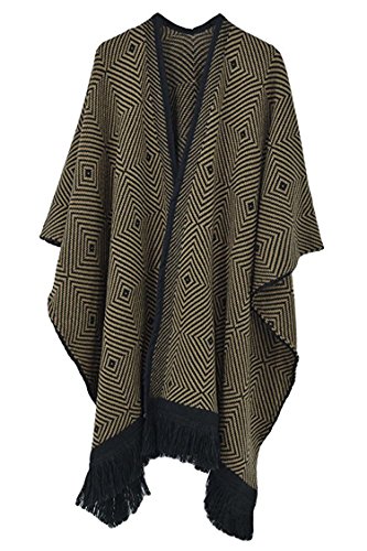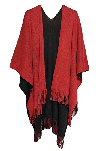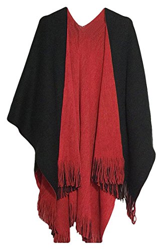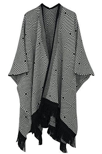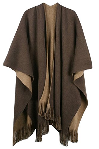| Timemory Womens Winter Solid Knitted Cashmere Poncho Capes Shawl Sweater |