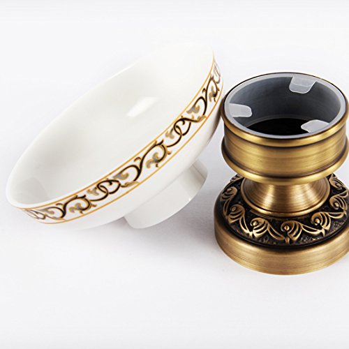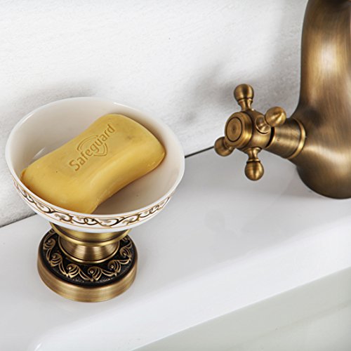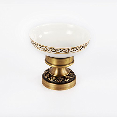 Neoclassic Style Art Engraved Bathroom Deck Mount Soap Dish Antique Brass Finish Pedestal and White Porcelian Soap Dish Soap Holder Bathroom Accessories