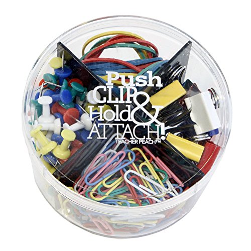 - Each container contains 40 rubber bands, 80 push pins, 100 metallic paper clips and 15 metallic binder clips