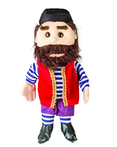 This 14 inch deck hand pirate glove puppet is up to no good. With his easy to access hand slit in his back, it is easy for the user to fit their entire hand in his back and have him making people walk the plank in no time. This is the perfect size for younger children. Any child can easily be sailing the high seas with this pirate. The ideal age for this puppet is ages 3+. All this pirate wants is a friend to help him find lost buried treasures!.Feature