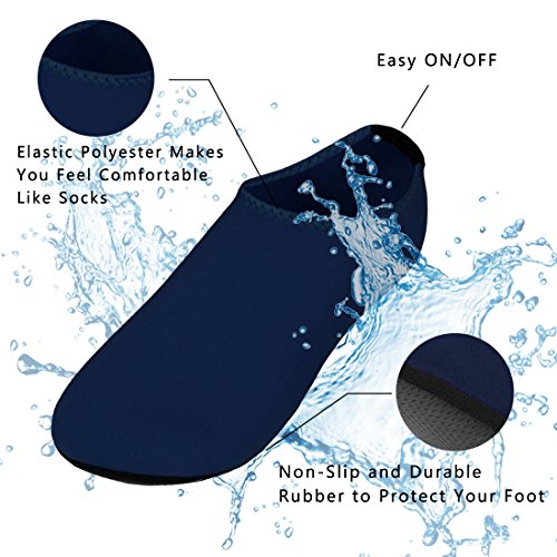 -. Feature : Stretchy ultra thin material makes it easy to wear and take off / Dry off quickly, excellent flexible, durable, anti-slip bottom and breathable / Help to prevent your feet from blisters, sunburn or to keep them warm / Perfect for protecting your feet from cut, puncture, scratch, and cold water while snorkeling, diving, kayaking, boating, walking along the beach, and other water sports / Guaranteed Service: With a full one-year limited warranty and a 120-day replacement guarantee. Worthwhile! Buy Now!