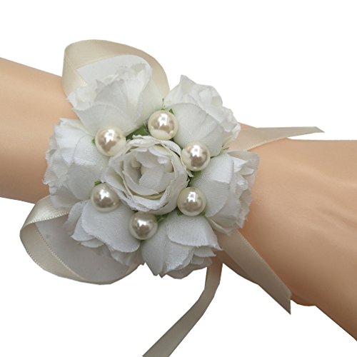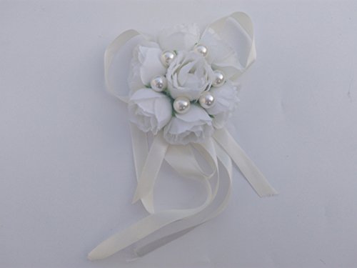 Steen Girls Handmade Pearl Wrist Flowers Wedding Bridesmaid Corsages Pack of 1 -White