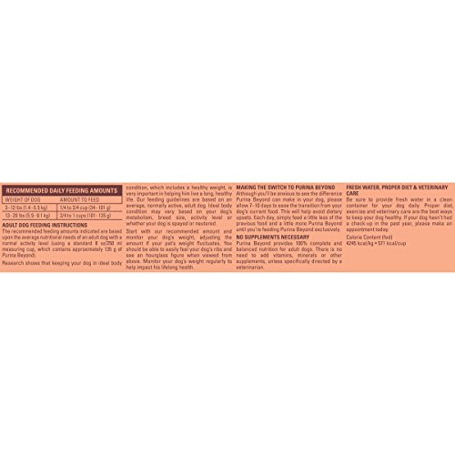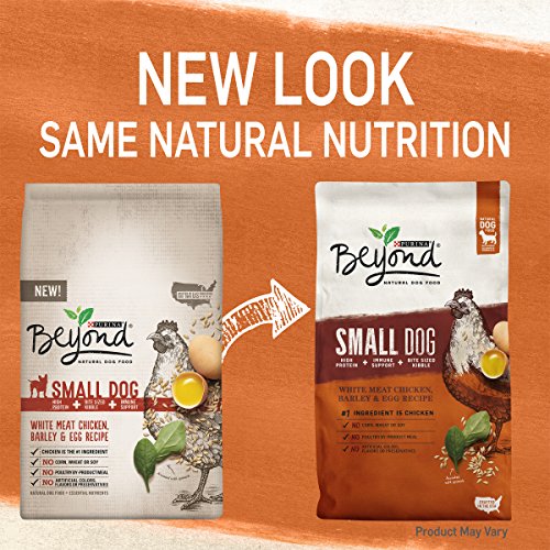 Tend to your small dog's unique nutritional needs when you serve him Purina Beyond Small Dog White Meat Chicken, Barley & Egg Recipe adult dry dog food. Starting with real chicken, each high-quality ingredient, including barley, oatmeal, spinach and egg, is specifically chosen to work together to help provide your furry family member with the nutrition he needs to live a long, healthy life. We craft this premium dry dog food without artificial colors, flavors or preservatives, so your canine companion gets the nourishment he deserves without any of the extra stuff he doesn't. We believe that every dog deserves great nutrition, no matter the size. Give your small dog a natural dog food formulated just for him that meets your stringent ingredient criteria, and rest easy knowing he's getting natural nutrition plus essential vitamins and minerals that provide a 100% complete and balanced meal. Choose Purina Beyond adult dry dog food for the variety he craves and the quality you expect.Feature