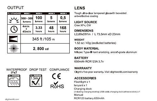 Olight S10R II Baton Generation II 500 Lumen Rechargeable LED Flashlight with RCR123A Battery and USB Charger Dock