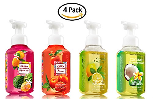 -. Feature : You receive FOUR (4) Gentle Foaming Hand Soaps -- Bath and Body Works Summer Favorites - Watermelon Lemonade, Juicy Georgia Peach, Kitchen Lemon, Coconut Lime Verbena -- 8.75 fl oz each / Watermelon Lemonade is a refreshing spritzer of watermelon & freshly squeezed Meyer lemons. / Kitchen Lemon is a fresh blend of zesty lemons, sparkling citrus and Italian bergamot. / Coconut Lime Verbena is an island blend of zesty lime, lemon verbena & coconut water. / Juicy Georgia Peach is a mouthwatering blend of sweet peach, orange blossom & honeysuckle nectar.