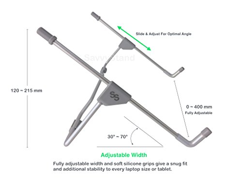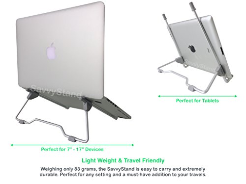 -. Title : SavvyStand Laptop Stand, Perfect for Laptop/iPad/Notebook. Light Weight, Foldable, Portable, Adjustable Height Width & Angle.