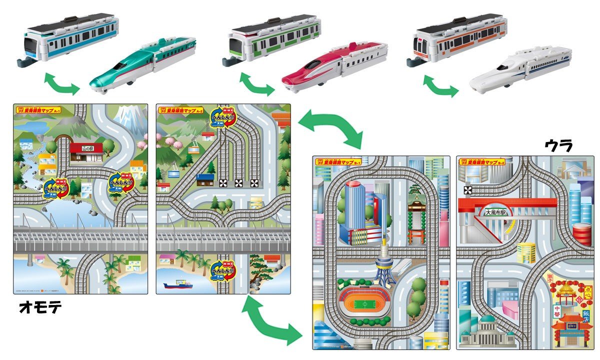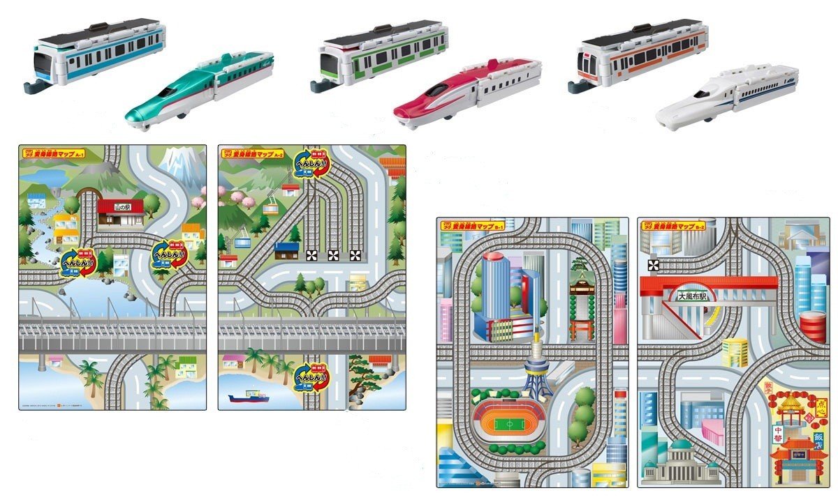 Bandai VooV Transforming Toy Train 3pcs and Reversible Transformation Map 2pcs Set