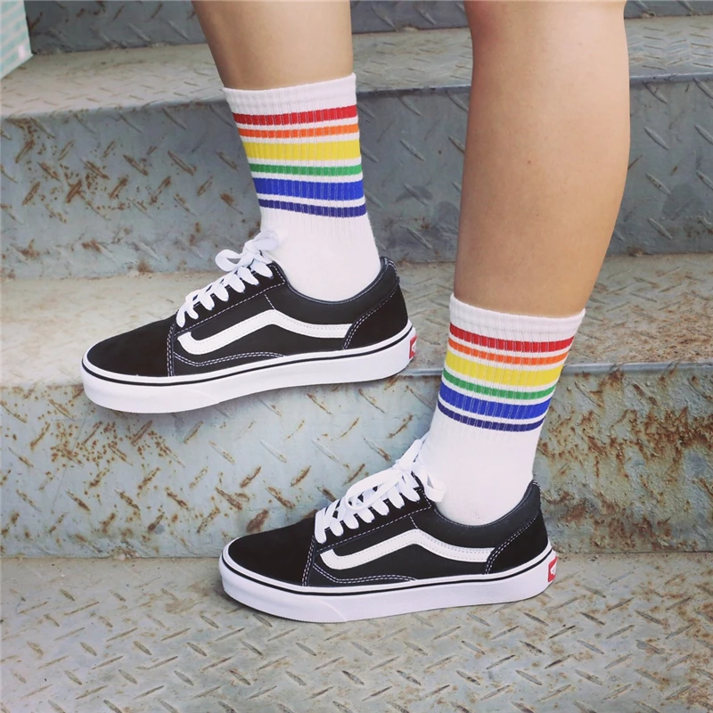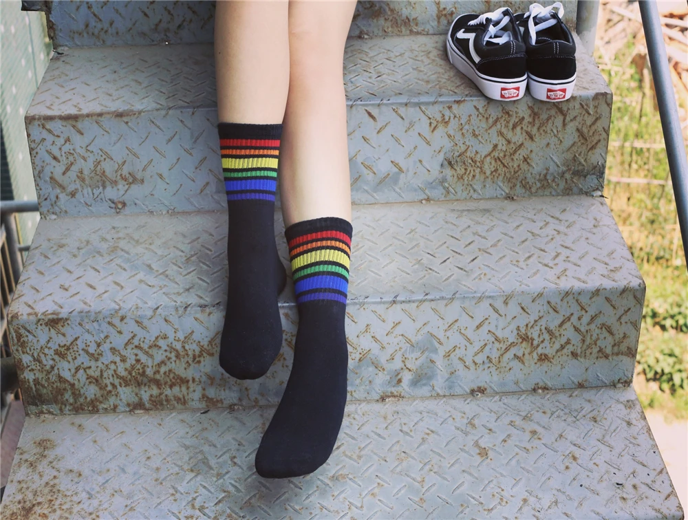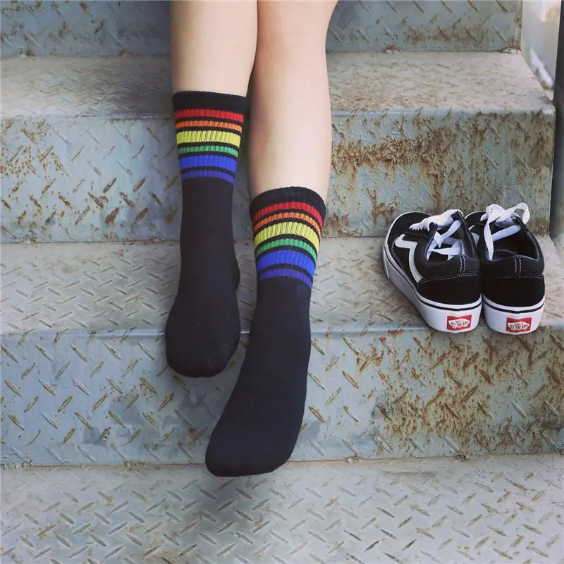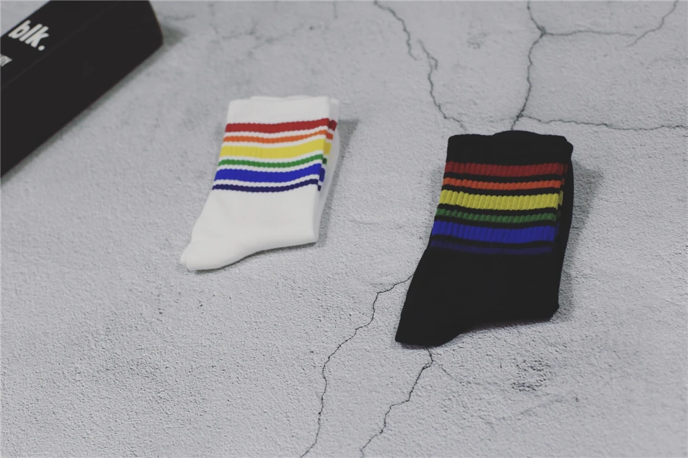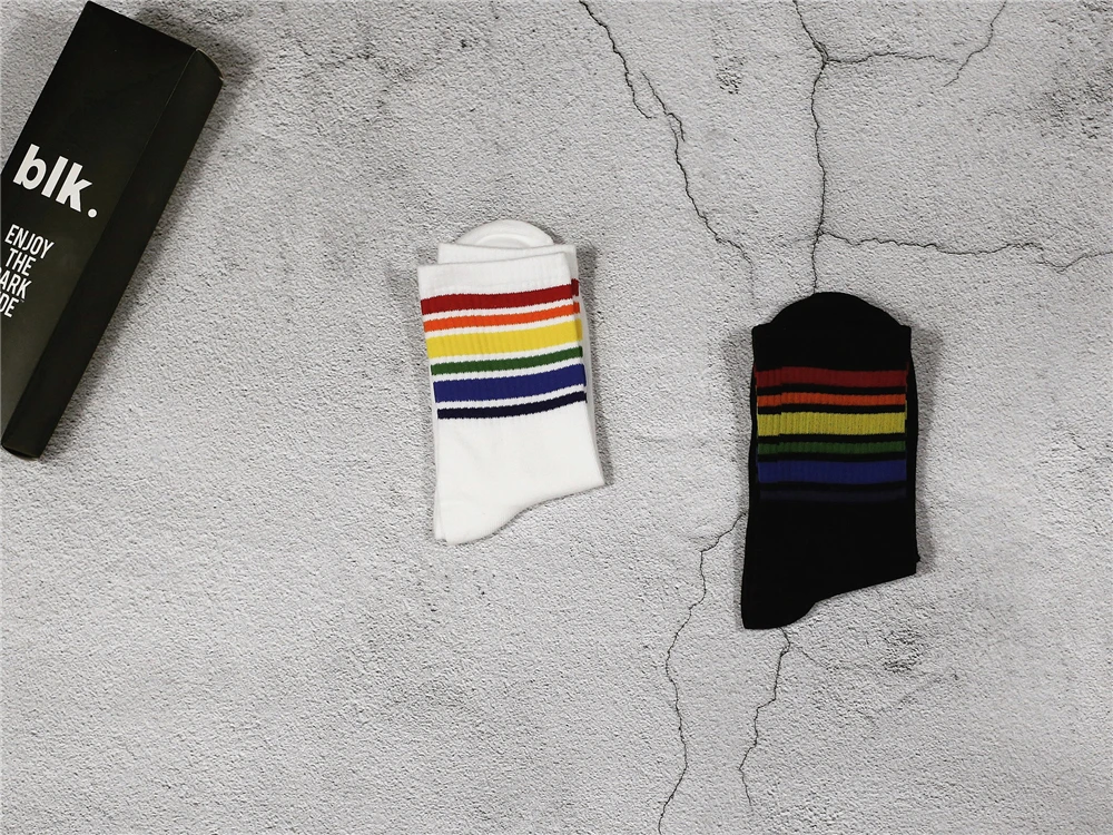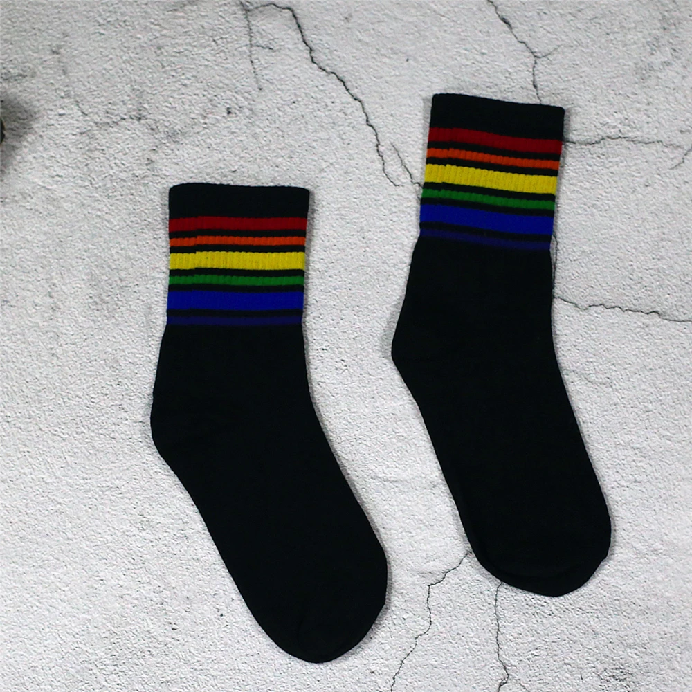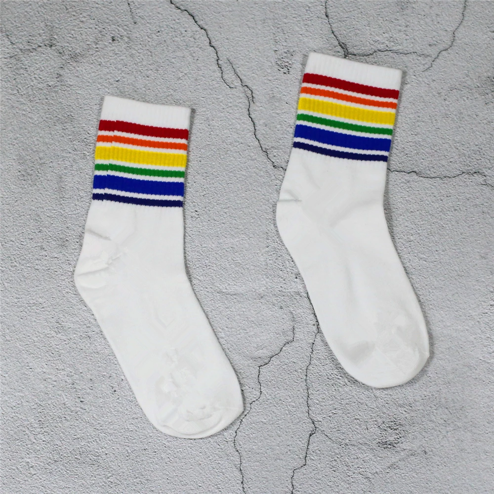 Model Number:White Black socks with Rainbow stripe