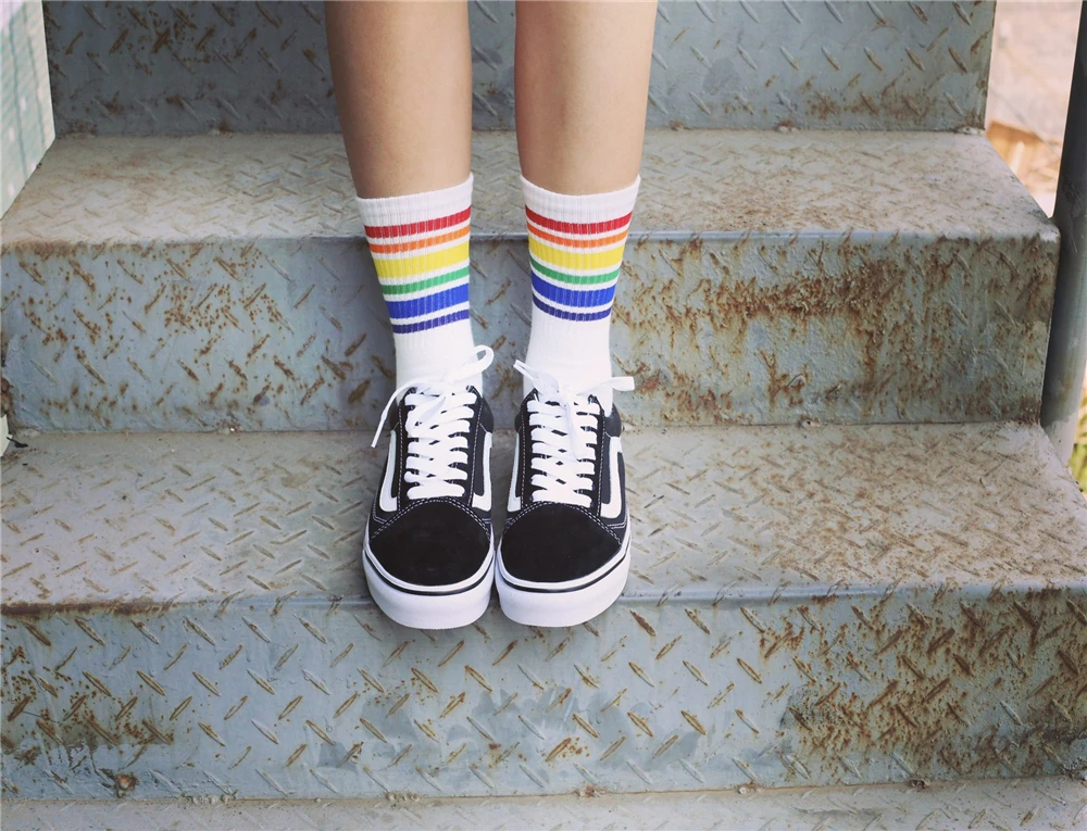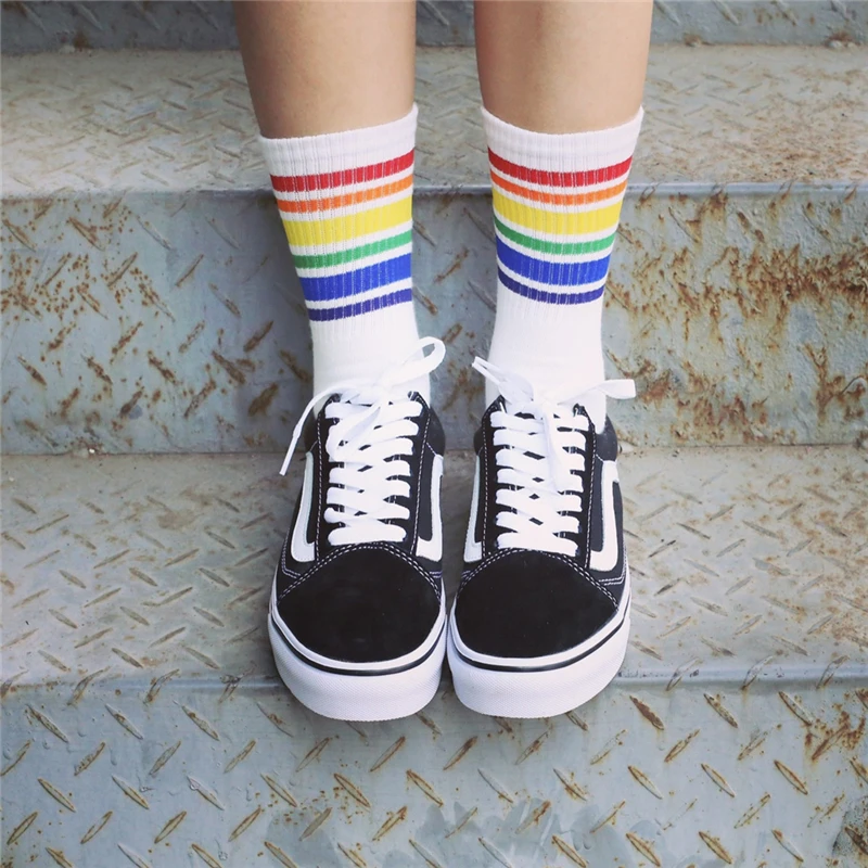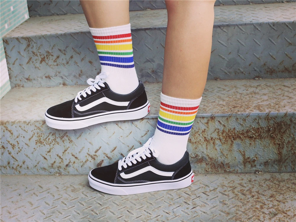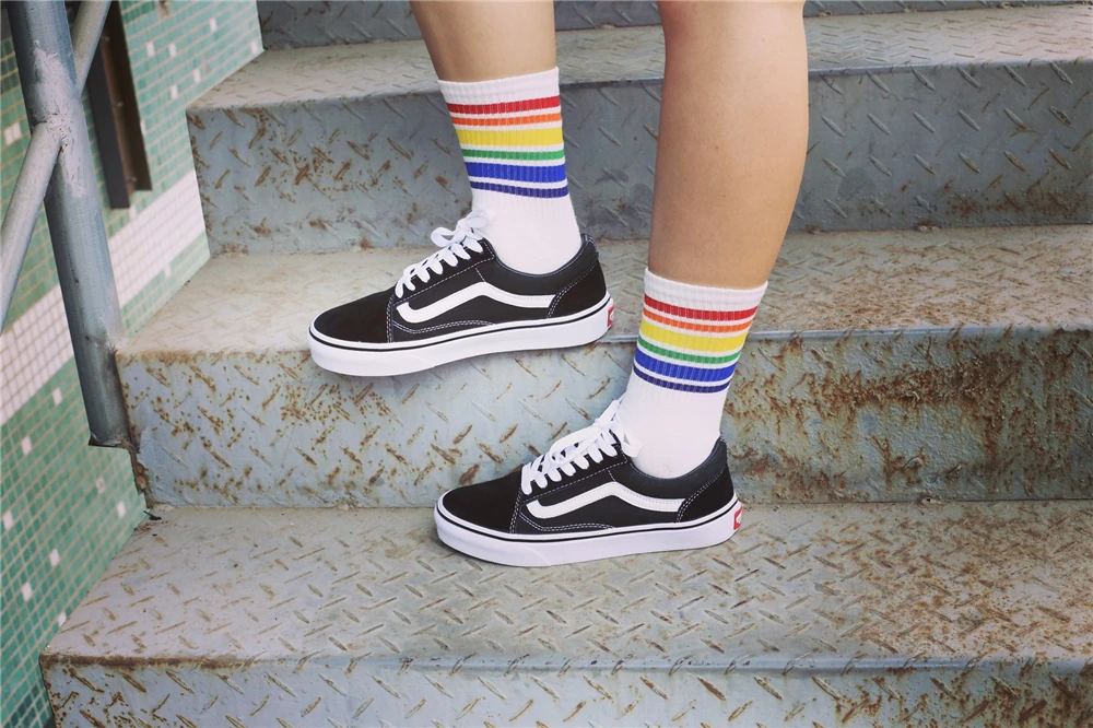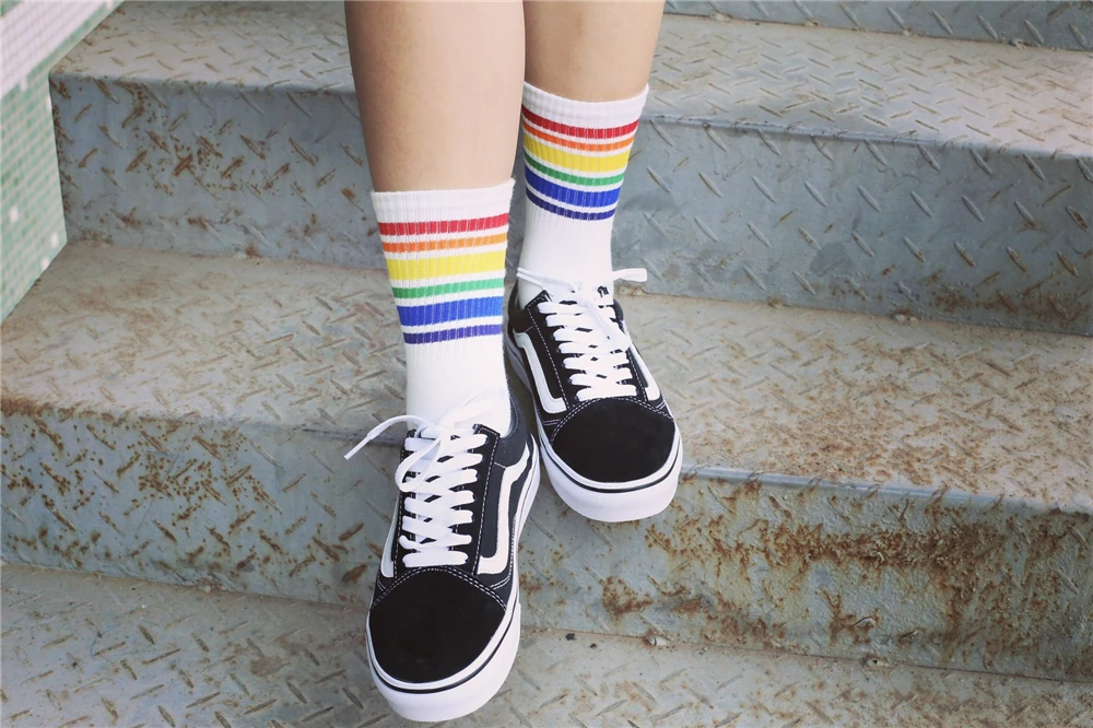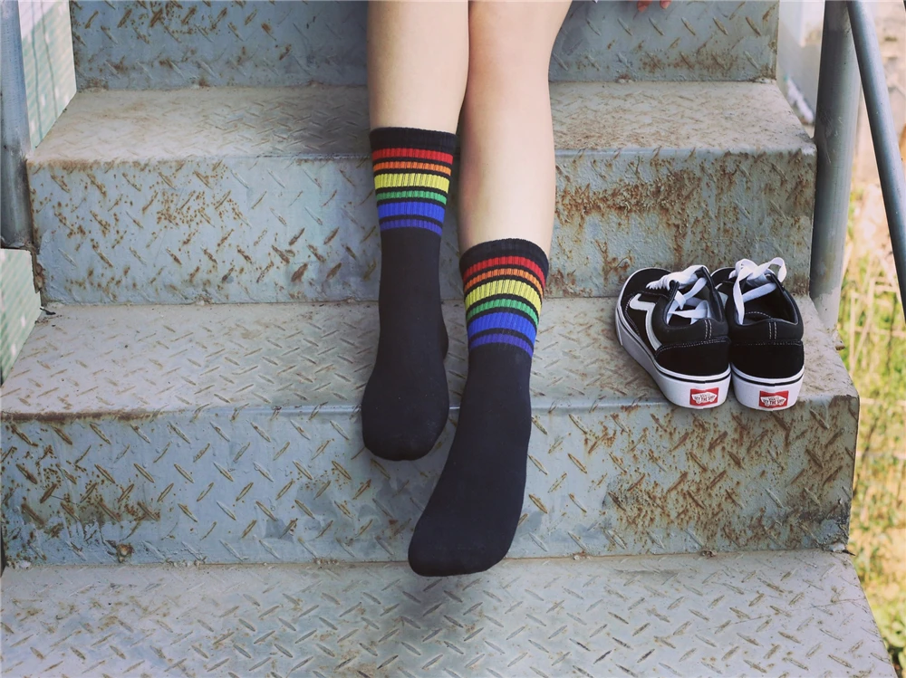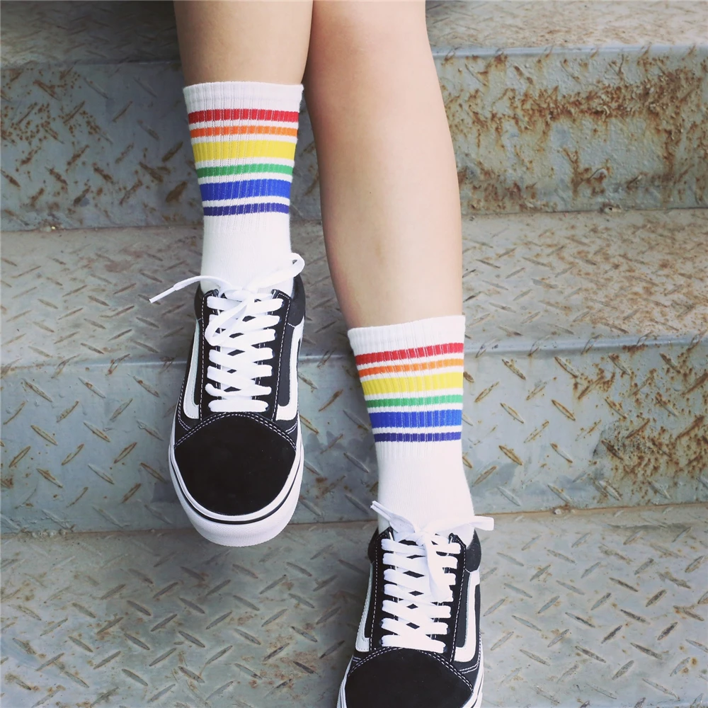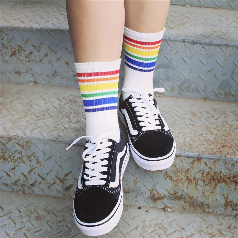 Model Number:White Black socks with Rainbow stripe