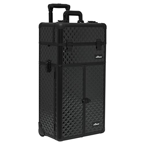 Sunrise Makeup Case on Wheels 2 in 1 I3665 Professional Artist, French Doors, 8 Trays and 4 Drawers, Locking with Mirror and Shoulder Strap, Black Diamond