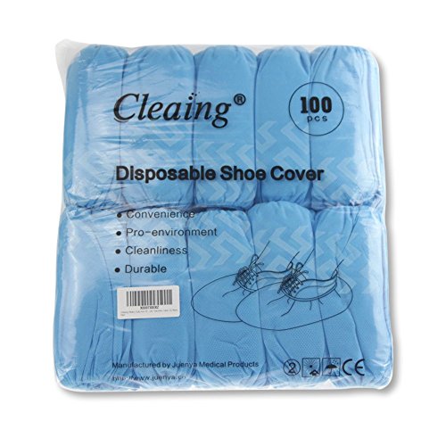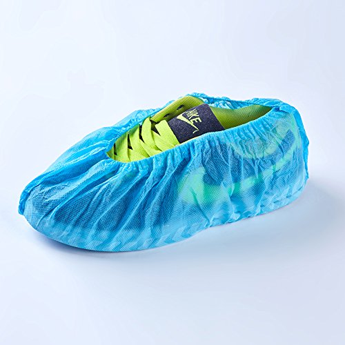 Cleaing Disposable Boot & Shoe Covers non slip with Tread Pattern 100 Piece, Blue,One Size Fits All Up to XL