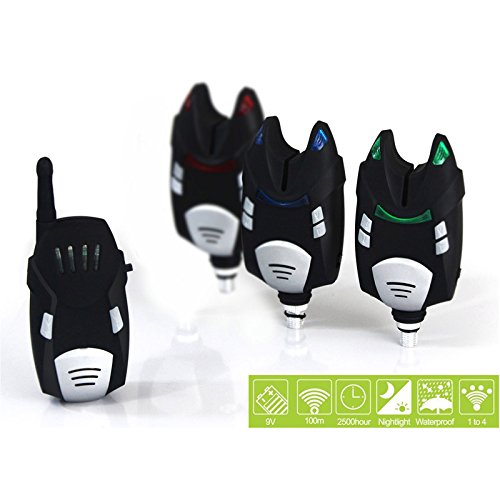 -. Title : SZMWL Fishing Bite Alarm 3+1 Bite Indicator 3*K001 Wireless Bite Alarms +1*FM02 Wireless Receiver Waterproof Radio Volume Tone Control Multi-colour Receiver/Transmitter Rating 100M Speaker Nite Light