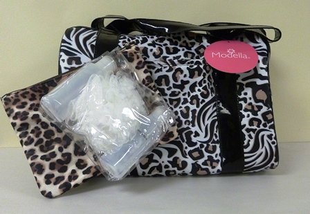 Modella Traveler with Fitted Pod Travel Kit, Cheetah Zebra, 4 pc