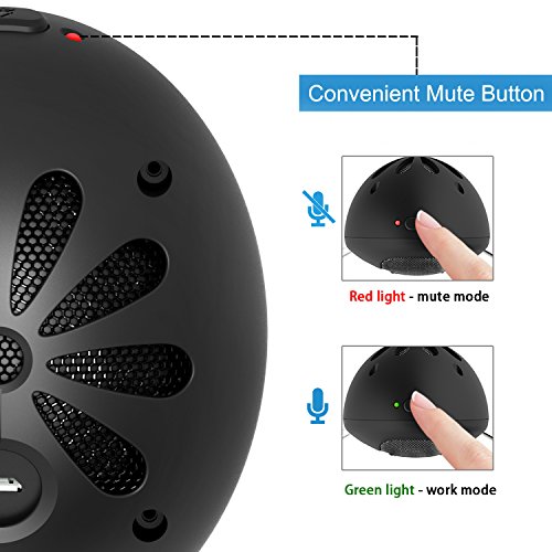 -. Feature : √ Stunning Audio Performance: with the custom condenser capsule, the cobblestone microphone delivers studio quality sound for recording, podcasting, editing audio, gaming, chatting, etc / √ Convenient Mute Button: mute/unmute the microphone with a touch of the button, with the LED indicator to show working status (green for work mode and red for mute mode), perfectly avoids leaking your P.R.Ivacy / √ Cardioid Pick-up Pattern: reduces unwanted background noise from sides and rear, and isolates desired main sound source, perfect for audio and instrument recording / √ Sturdy and Exquisite Design: Unique cobblestone style design with sturdy tripod is ideal for desktop at home or work space; the microphone can be freely pivoted to optimum position / √ Plug and Play: USB-powered design condenser microphone can be directly connected to your Mac or Windows computer, no fussy driver or phantom power needed
