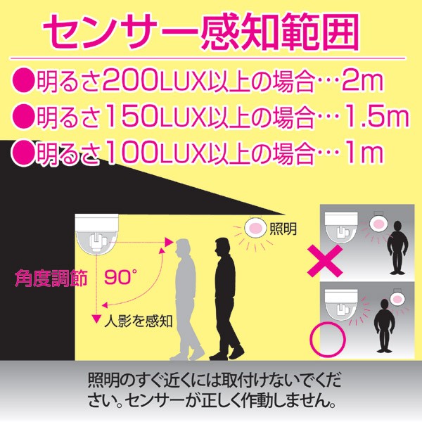 ■動作照度/50LUX以上 ■使用温度範囲/0~40℃ ■1回当りの点滅時間/約20秒