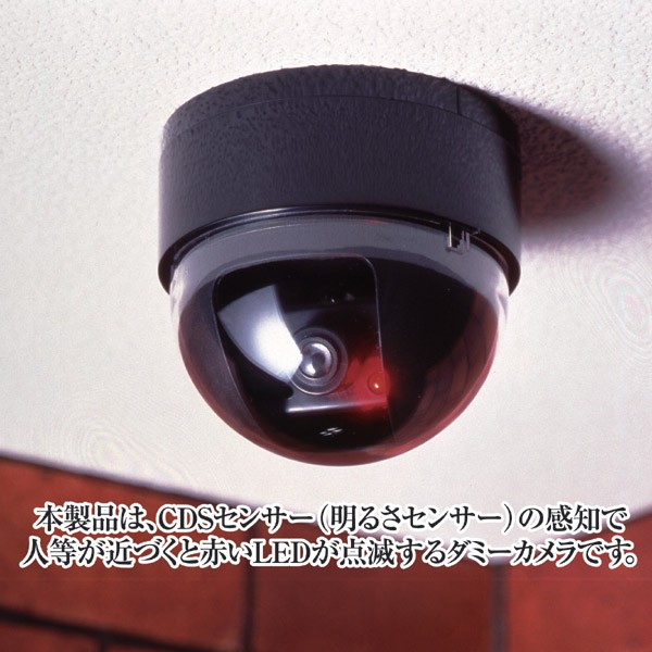 【商品名】ドーム型防犯ダミーカメラ CDSセンサー/LEDランプ付き (防犯対策)