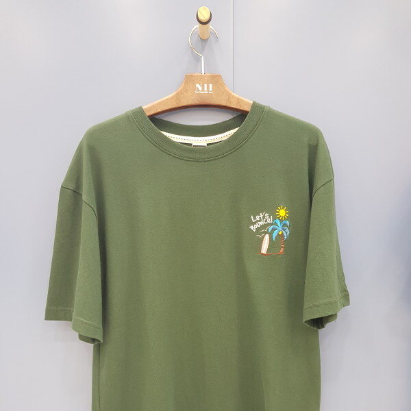 남녀 공용으로 하와이안 그래픽이 포인트인 라운드 티셔츠 입니다