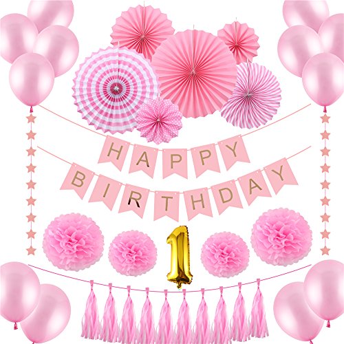 -. Feature : 大切なお子さん、親友、友達、家族に誕生日サプライズを準備しましょう。色々なパーティー飾り付け用品を含めって、超豪華な誕生日飾りセットです。 / 【セット内容】:HAPPY BIRTHDAY 英語ガーランドx1個、タッセルガーランドx10個、ペーパーファンx6個、スターガーランドx1個、ペーパーフラワー x4個(35cmx 2個、25cm x2個)、ピンク風船x10個(予備2個)、数字1風船(40 cm)x1個、両面テープx1、計36点セットです。 / 【おすすめ場所】:可愛い色合い、100日お祝い、1歳、出産祝い、誕生日会や、結婚式、バースデーパーティー、ウェディング、二次会いろんな記念日パーティーには適用です。記念撮影にも素敵です。 / 【ご使用】:すぐに使える部屋飾りセットです。紙製で環境にやさしいし、作り方は簡単です。お部屋の天井や壁などにマスキングテープで貼ったり、吊るしたりして、 簡単にオシャレなディスプレイをお楽しみ頂けます。 / 【サービス保障】:万が一商品に不具合がある場合は、すぐ弊社と連絡してください。弊社の営業担当が至急の対応いたします。無料交換あるいは全額返金対応が可能です。