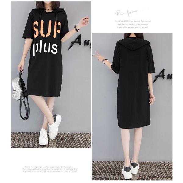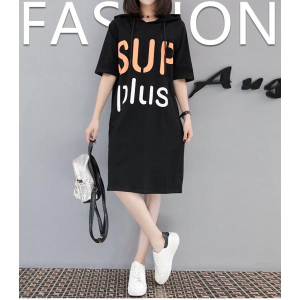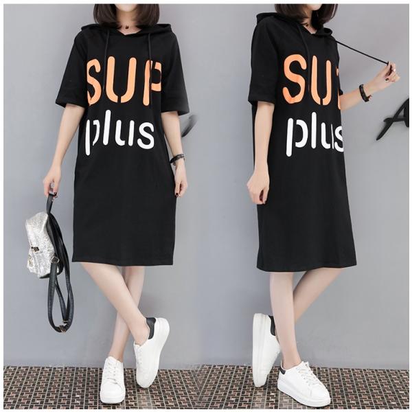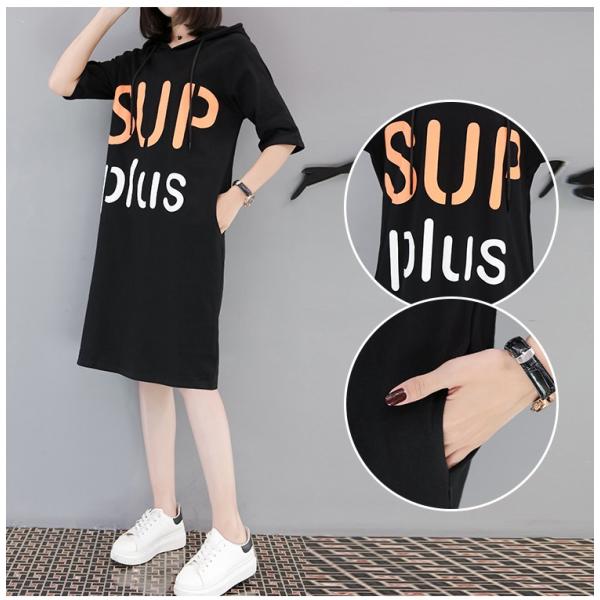 ロゴプリント、フード付きの五分袖ワンピース。
