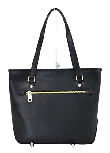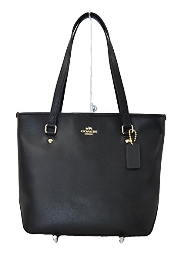 COACH BLACK CROSS-GRAIN LEATHER ZIP TOP TOTE