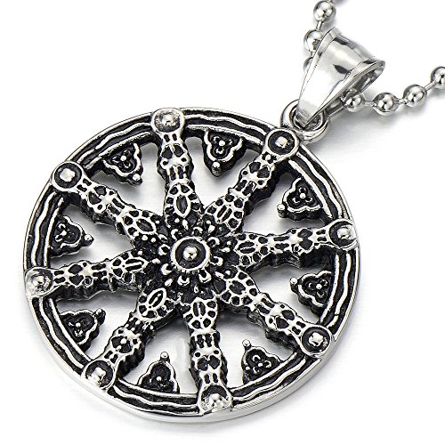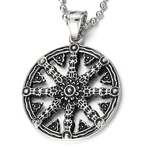 -. Title : Mens Dharmachakra Pendant Dharma Wheel of Law Buddhist Symbol Necklace Stainless Steel with 23.4 in Chain