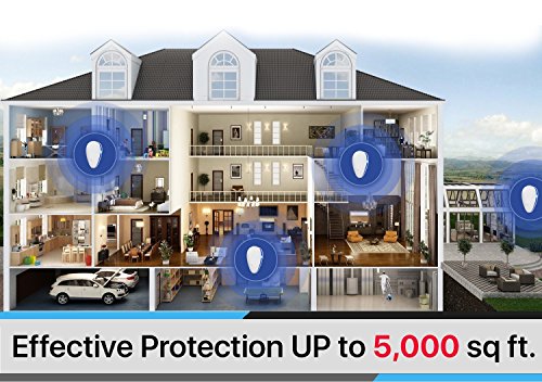 LARGE COVERAGE AREA - UP TO 5000 SQ.FT TOTAL: The Ultrasonic Pest Repellent is effective for an area 1250 Square Feet per device. Please note that ultrasonic waves cannot travel through walls. Though our unit works very well, if you have a large infestation, we recommend placing one in every room!