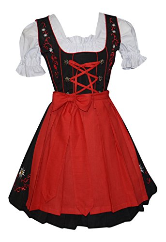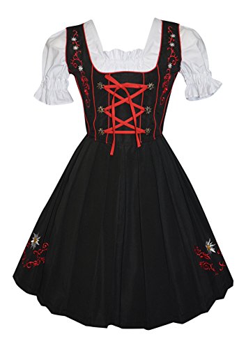 -. Brand : Edelweiss Creek -. Color : Black -. Department : Womens -. Feature : Each Dirndl Purchase Includes The Beautiful Red Apron And Crop Top Blouse. / Machine Wash / The Beautiful Edelweiss Embroidery Throughout The Drindl / The Material is 65% Cotton 35% Polyester / The Embroidery Along The Base Has A Backing On The Underneath Side To Prevent Unraveling -. PackageQuantity : 1 -. ProductGroup : Apparel -. ProductTypeName : ADULT_COSTUME -. Title : 3-piece Short German Party Oktoberfest Dirndl Dress Black & Red