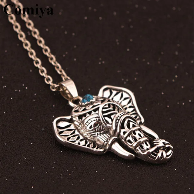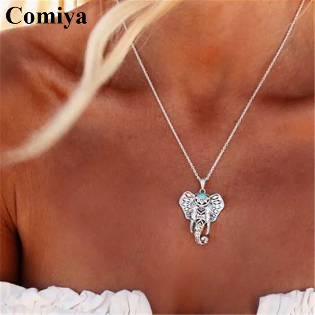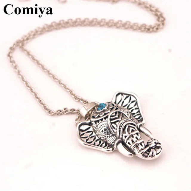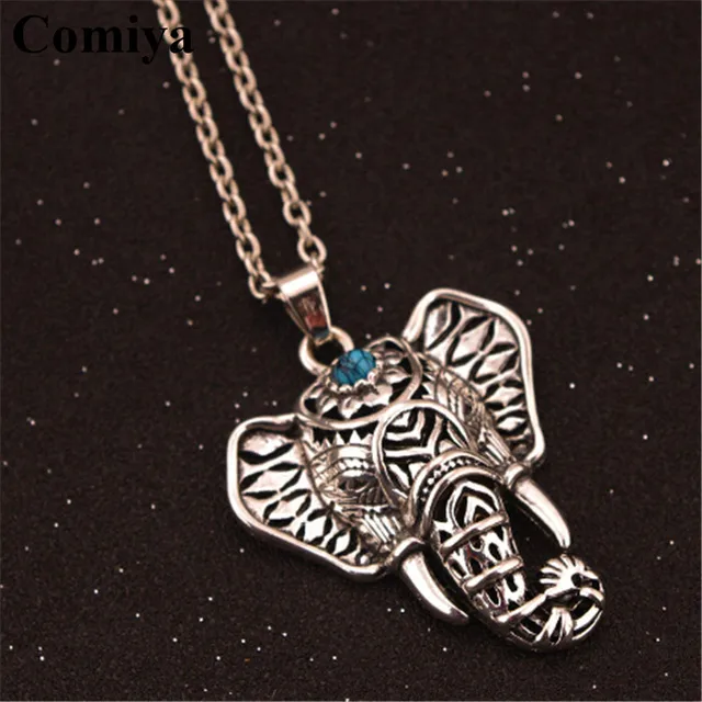 | [해외] 유럽 2017 긴 실버 도금 목걸이 비쥬 팜므 인도 보석 코끼리 펜던트 액세서리 모조 블루 스톤 목걸이 |