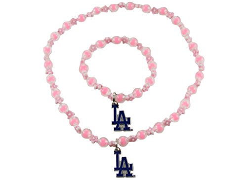 -. Feature : Los Angeles Dodgers girls pink plastic beads with enamel charm / stretch bracelet and necklace set. / Necklace is approximately 15" and the bracelet is approximately 6". They both stetch. / Charm is approximately 3/4" x 3/4". / Makes the perfect gift for the young baseball fan in your life.