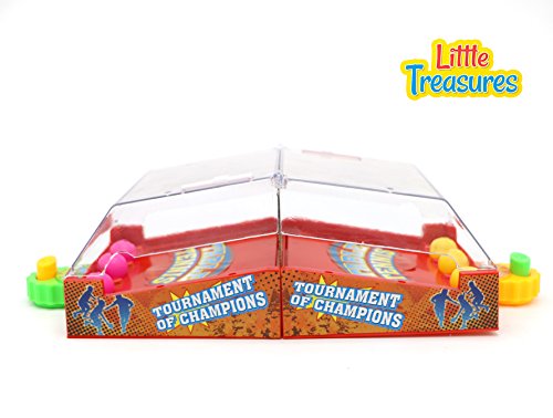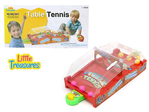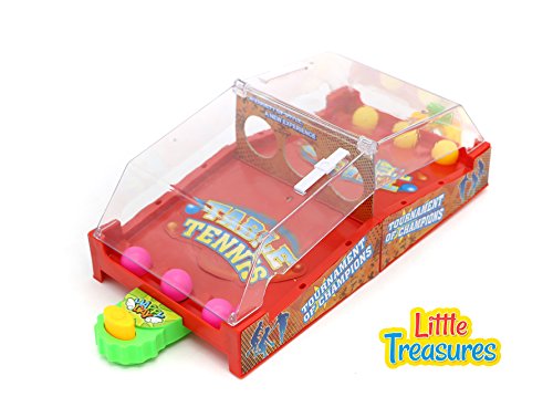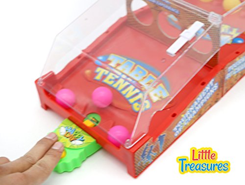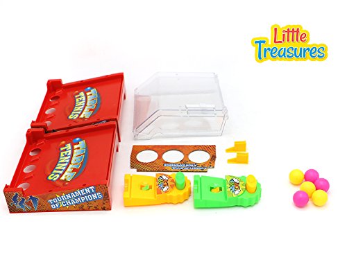 Studio : LITTLE TREASURES Publisher : LITTLE TREASURES Binding : Toy Product Description Little Treasures has brought a unique game for kids to have fun with by shooting balls into one another's play area trying to score. This exciting concentrated adapted tennis style game will bring play time to new exciting heights as kids battle out by aiming to shoot the ball from their side up through obstacles into their opponents side trying to score three times before they do. If they are scored on though they now need to shoot those balls back into their opponents play side, so it can go on for a while until a winner is decided. Description: Included in this game set is the game arena which is two slanted platforms that are enclosed in clear plastic so that the bouncing balls don't go flying off somewhere, the slanted platforms meet at a wall with three holes in it, at the bottoms of each platform is a shooting device that launches balls up the platform and hopefully through the holes in the wall into the opponents platform, each side is equipped with 3 balls. From there the action gets going and kids can shoot it out for hours until a winner is decided. The game is so much fun to play that parents will even find themselves getting pulled into tournaments and battling it out for victory in this game set from Little Treasures. 0