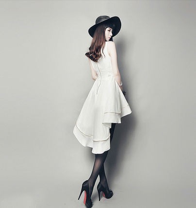 フィッシュテールデザインの、ミモレ丈ワンピース。