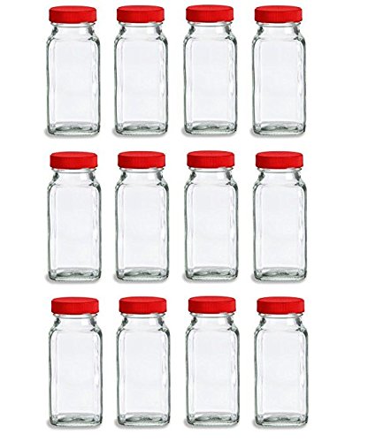 Nakpunar Glass Spice Jars with Shaker Insert and Red Cap (12, 6 oz)