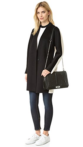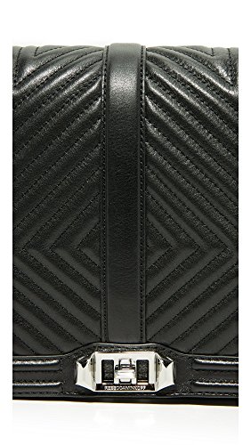 A large version of signature Rebecca Minkoff's Love bag. The exterior has a slim back pocket, and a turn-lock fastens the quilted top flap. Lined, 4-pocket interior. Chain shoulder strap.