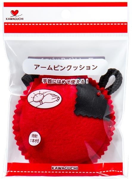 針山を手首に付けられるので、場所を取らず、必要な時にサッと使えて便利です。 製造国:台湾 素材・材質:ポリエステル、PVC、ゴム 商品サイズ:Φ85×25mm 付属品:待針1本 ※サプライヤー直送品  ご注文後2~3営業日後の出荷となります【商品名】KAWAGUCHI(カワグチ) ソーイング手芸用品 アームピンクッション 赤・13-125