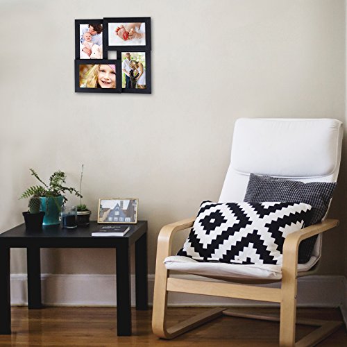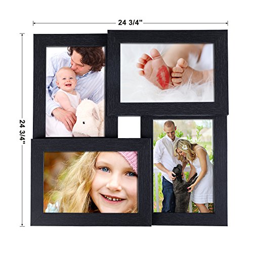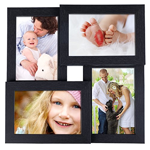 -. Title : SONGMICS 4 Opening Wall Collage Photo Frame for Multiple Photos in 4’’ x 6’’ Wood Grain Black URPF24BK