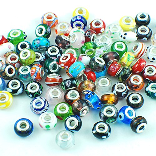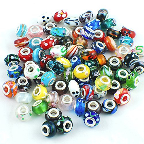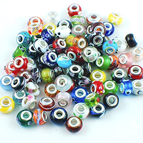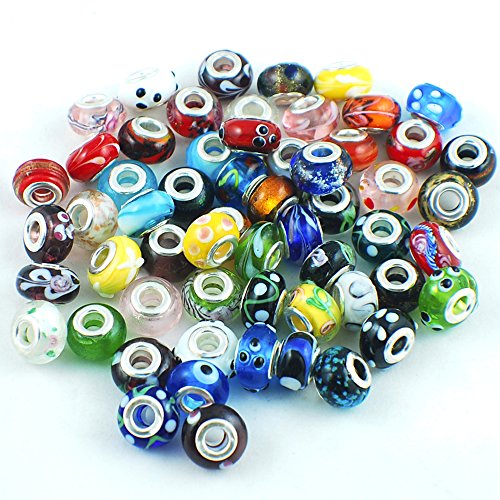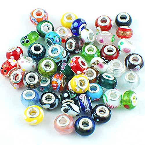 Silver Color Murano Glass Beads Fit European Charm Bracelet Spacer by eART 50pcs Mix