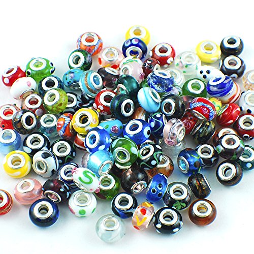 Murano Glass Charm Beads Fit European Charm Bracelet, each Bead is Made by experienced Murano Glass lampwork Workshop.-We Choose Randomly From More Than 400 Styles in Our Stock.
