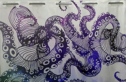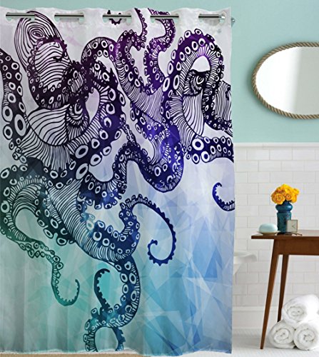 Goodbath Hookless Shower Curtain, Ocean Kraken Octopus Hipster Pattern Mold Free and Waterproof Fabric Bathroom Shower Curtains, 72 x 72 Inch , Purple Blue Teal