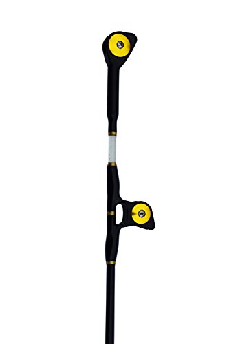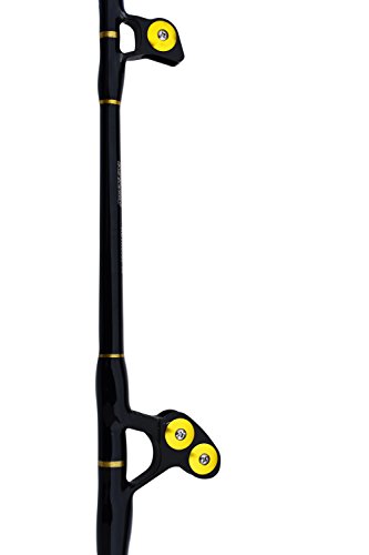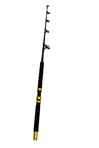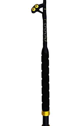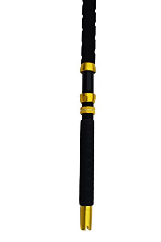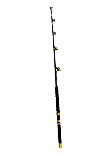 Blue Marlin Tournament Edition 60-80 lb. saltwater fishing rod. This is our finest grade tournament rod and ideal for Marlin, Yellowfin Tuna, and record Wahoo in the Bahamas. Constructed with the most expensive composite blank and wide mouth roller guides capable of passing the largest wind on leaders for outstanding control at boat side. All guides feature the finest roller components and have double wraps for strength. Excellent back bone and sensitive tip for the best action of any rod we have tested. The span wrap construction is important when a fish takes off to the side and the rod will resist twist better than any rod we have tested. Made from the finest high carbon composite blank span wrap construction to minimize side loads and twist. Close to unbreakable. Wide mouth wind on leader roller guides. EVA foam grip for non slip and comfort. Length is 5' 6" for ideal control. Gimbal cross on the end of rod butt for rod holders or fighting belts.Feature