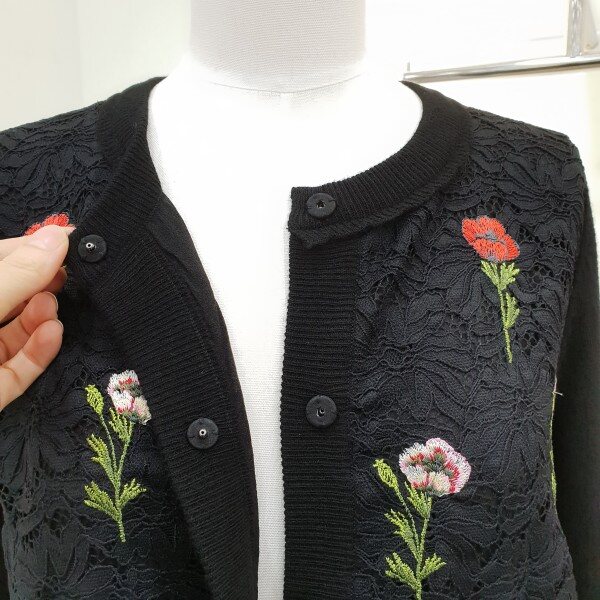 레이스몸판에 자수가놓아져한결더 고급스럽습니다~♡뒷쪽은 니트로 편안하게착용가능♡총장 56cm