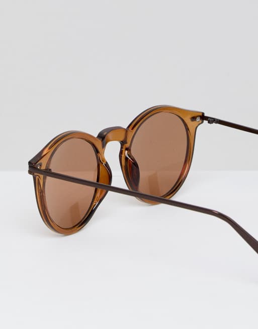 ASOS Round Sunglasses With Metal Arms in Brown