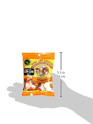 -. Binding : Grocery -. Brand : Just The Cheese -. Feature : One pack of 12 2-ounce bags (24 total ounces) / Made from real Wisconsin cheese / Naturally low in carbohydrates / Natural cheese is crumbled, seasoned and baked into bite-sized pieces / Made with a patented 17-step baking process that makes natural cheese into a crunchy snack -. Label : Just the Cheese -. Manufacturer : Just the Cheese -. Model : 44213 -. NumberOfItems : 1 -. PackageQuantity : 12 -. ProductGroup : Grocery -. ProductTypeName : GROCERY -. Publisher : Just the Cheese -. ReleaseDate : 2006-02-14 -. Studio : Just the Cheese -. Title : Just the Cheese Rounds, Jalapeno, 2-Ounce Bags (Pack of 12)