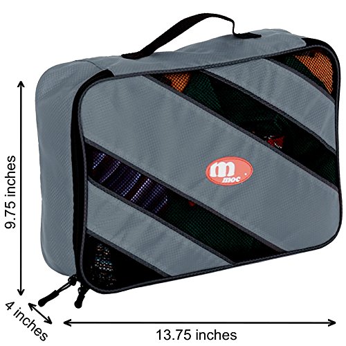 PRACTICAL UTILITY: Mesh top panel for easy identification of contents, and ventilation. Cubes will last long with no broken zippers, no weak stitching. MOC Brands Packing Cubes will become your best & reliable travel accessory!